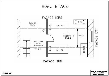 - Au 2ème étage : coin jeux pour enfants, 1 chambre avec 2 lits de 90, coin bureau.